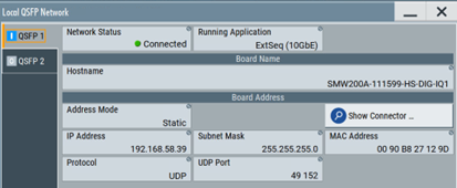 On the main Extended Sequencer screen, the user must also configure the QSFP network settings by selecting the Local “QSFP Network Settings” button. Within the pop-up window, the user can specify the network IP address. For this project, the Raspberry Pi controller requires the network settings as described in Figure 6.