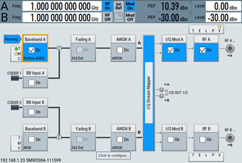Once the above process is completed the SMW200A baseband is in a fully configured state to begin sending ADWs to the system. The user must also turn on the RF block and set the desired RF center frequency in the main SMW200A GUI.